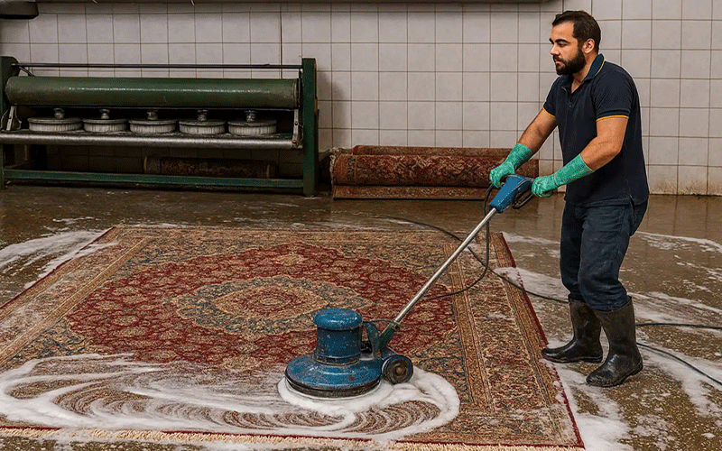 تمام فرایند شستوشو با دستگاههای تماماتوماتیک و شویندههای مخصوص انجام میشود تا تار و پود فرش آسیب نبیند و رنگها ثابت بمانند.