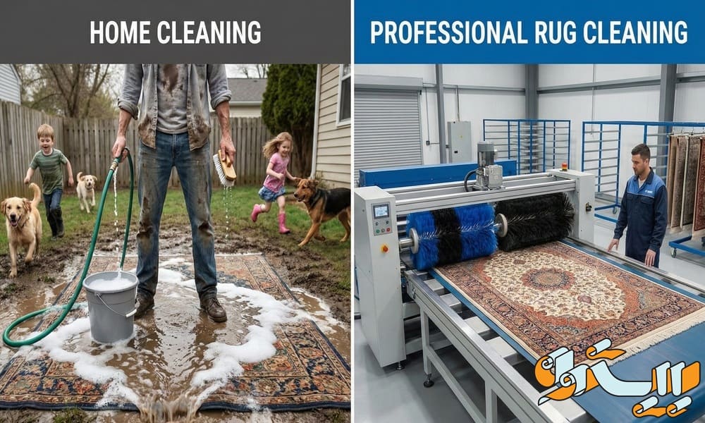 مقایسه شستن فرش در خانه و قالیشویی